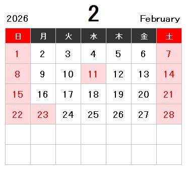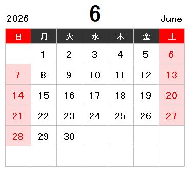 2026年1月~2026年6月の営業日カレンダー